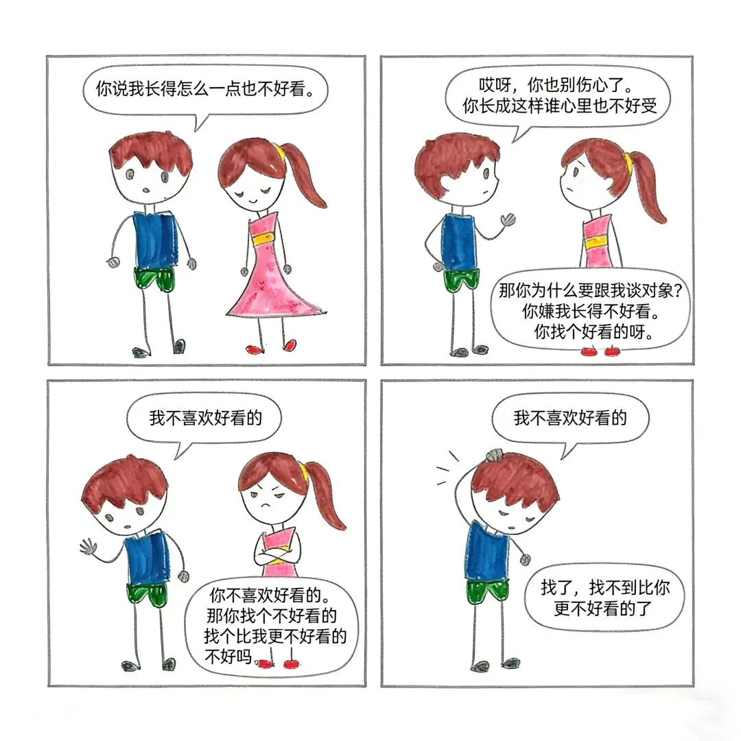 女:那你为什么要跟我谈对象?你嫌我长得丑,你找个好看的呀!