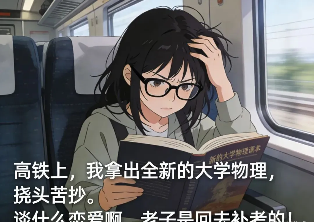 高铁上,我拿出全新的大学物理,挠头苦抄。