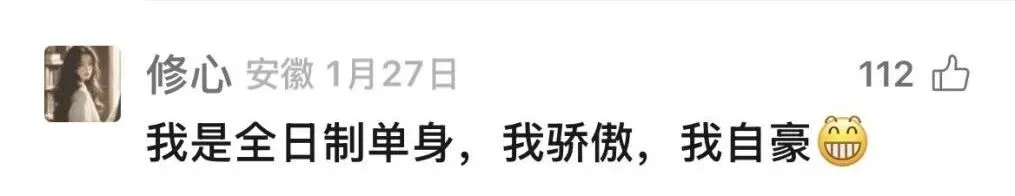 评论区更是热闹,有人补充:我是上班时间单身,下班路上单身,在个别人心里单身、有一点单身......