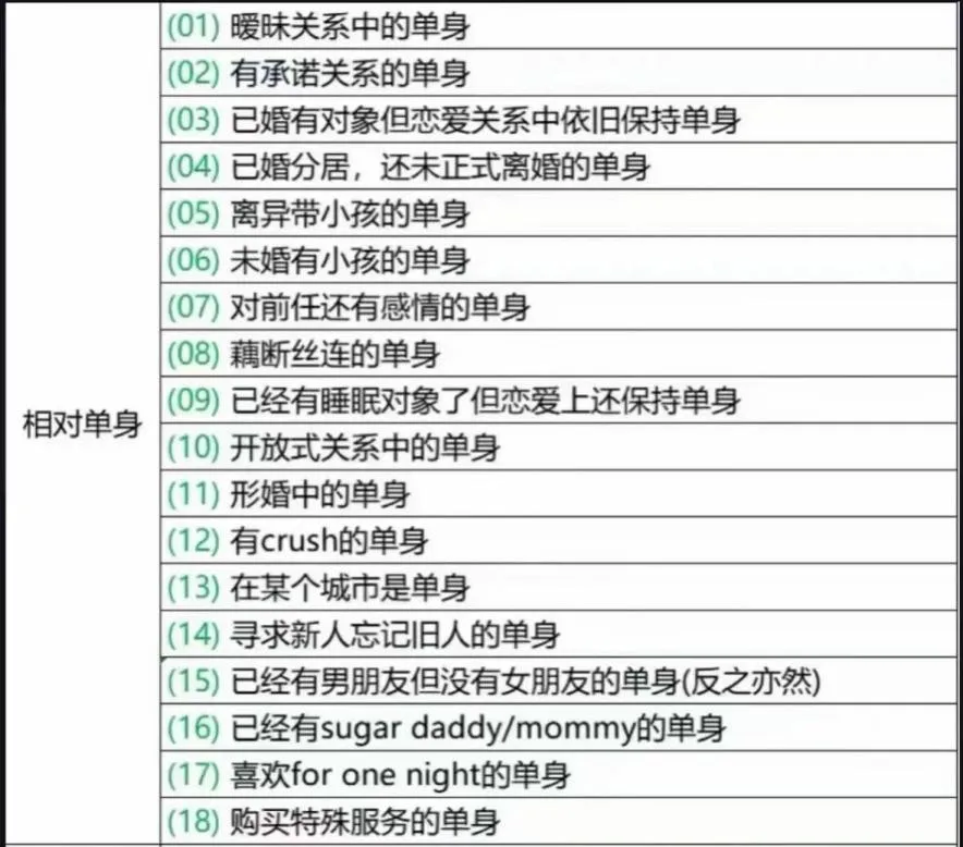 网上流传的这18种“相对单身”形态,把我也给看懵了:
