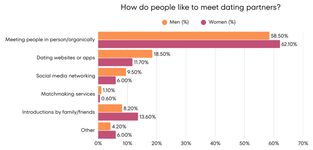 这可能是因为算法匹配死板、线上聊天低效、虚拟社交的不真实感带来了「约会软件疲劳」,越来越多的人对线上交友失去了耐心。