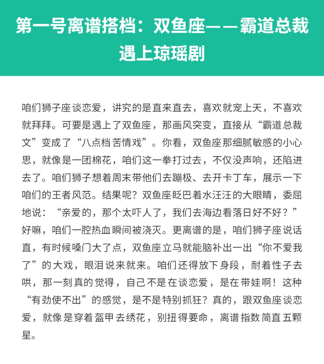 今天咱们就来扒一扒,到底是谁能让咱们狮子座的恋爱谈得这么“离谱”,看看你有没有中招?