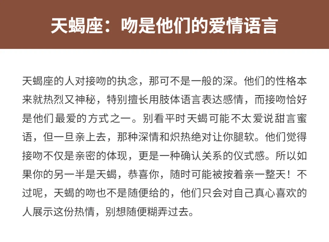 接吻这件事吧,真的是一个人的性格和情感表达的放大镜。有的人害羞腼腆,能主动牵个小手就已经是极限;而有的人完全就是“接吻狂魔”,只要氛围对了,分分钟想亲上去,完全不管旁边是不是有围观群众。今天咱们就来说说,十二星座里接吻欲最强的三大星座。注意了啊,榜上有名的可能就是你身边那个总是“不安分”的人哦!