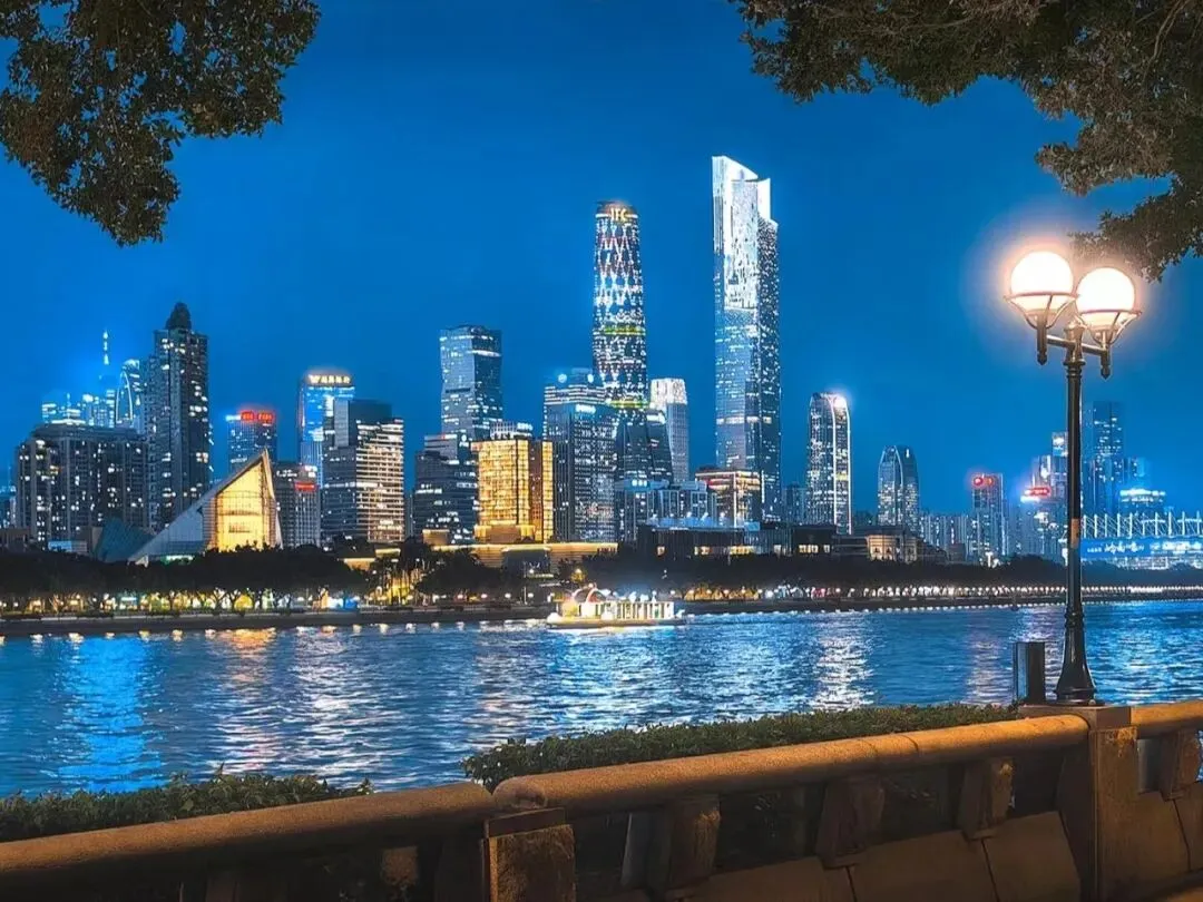 猎德大桥等地标在夜色中熠熠生辉