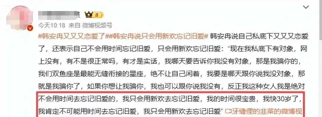 "我是双鱼座,最擅长无缝衔接。""快三十岁的人,时间宝贵,不会浪费时间去忘记过去,只会用新欢覆盖旧爱。""所谓单身就是在骗人。"