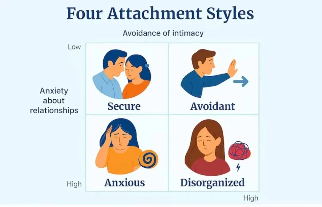 从鲍尔比与安斯沃斯的“依恋理论”来看,我们幼年时期与照顾者建立的互动模式,会深深影响我们成年后在亲密关系中的行为表现。依恋风格主要分为四种类型:安全型依恋、焦虑型依恋、回避型依恋和恐惧型(混乱型)依恋。大量的恋爱内耗源于不安全依恋类型的碰撞。其中,“焦虑-回避”的追逃模式(一人越追,一人越逃)是大学生恋爱中最痛苦的困扰之一。焦虑型潜意识里认为“爱是辛苦的,别人最终会离开我”,回避型的冷漠正好验证了这一预设;回避型潜意识里认为“别人总是想要控制我”,焦虑型的追逐也验证了他们的看法。故而,二者容易互相吸引。然而,当关系出现波动时,焦虑型依恋在恋爱中极度渴望亲近,害怕被抛弃,表现为查手机、夺命连环call、过度索取情绪价值;而回避型依恋在面临亲密升级或冲突时,倾向于冷暴力、逃避沟通、强调绝对的个人空间。这就造成了追逃模式的恶性循环。3. 应对措施
