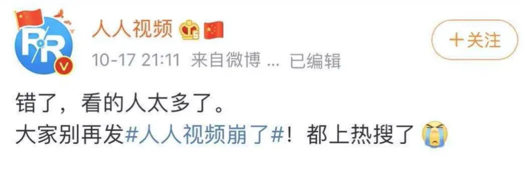这周四晚《致命女人》最后一集播出,人人视频还崩溃了。