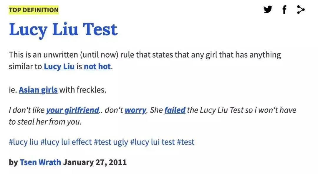 Urban Dictionary还曾收录了「Lucy Liu Test」 这个俚语: