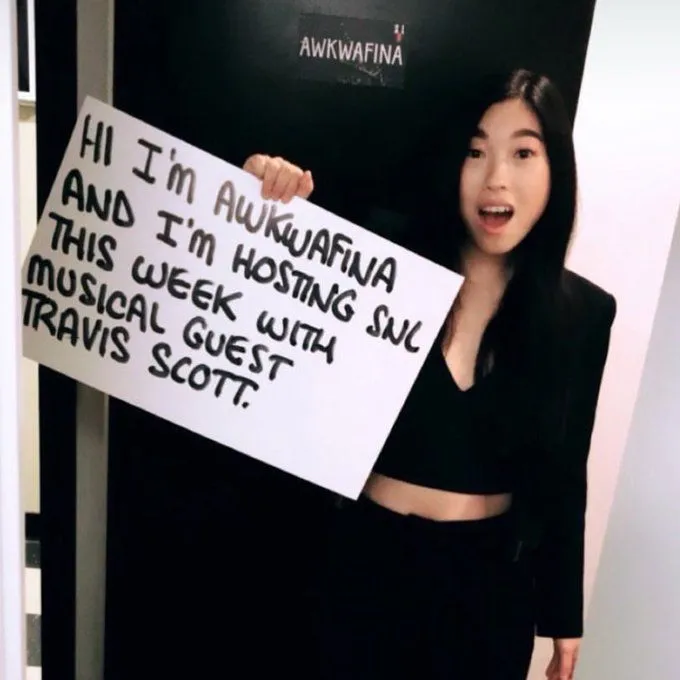 《周六夜现场》的主持人Awkwafina讲过一个故事。