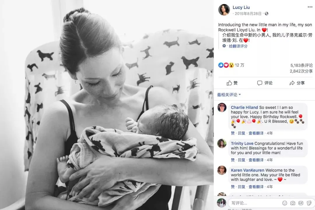 她抱着一个孩子,是通过代孕出生的,跟她姓刘。