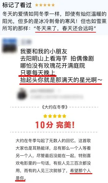 伴随他们的人生际遇,伴随《大约在冬季》熟悉的歌声,我想每个人对于爱情,都会有自己的全新思索。