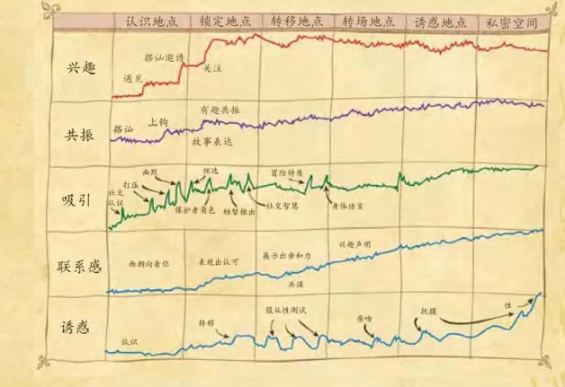 诱惑(Seduction):当其它几种情绪已经发生了,并且你们俩在一个私密地点独处,那么你就可以开始激发她的性欲。记住:如果你太猴急,她会有事后反悔(Buyer Remorse)现象。事后反悔会让她在接下来的时间避开你。