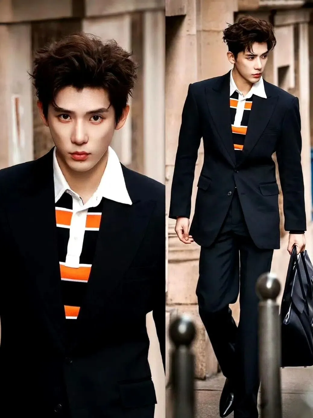 他是CELINE首位中国男大使,这次时装周一身黑色西装配条纹针织衫,冷峻轮廓加上生图能打的颜值,被网友封为“清冷贵公子本尊”。