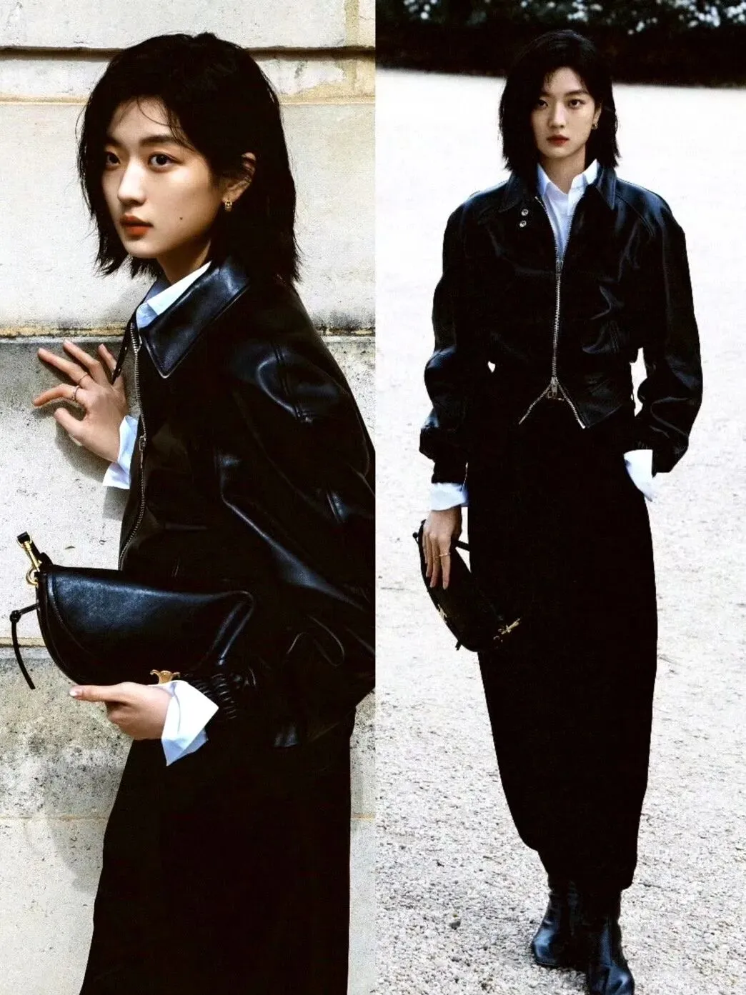 这次秀场All Black皮衣造型又美又飒,缩脖子保暖的小动作却被抓拍,调侃是“怕冷的豪门小妹”,灵动反差萌依然圈粉。