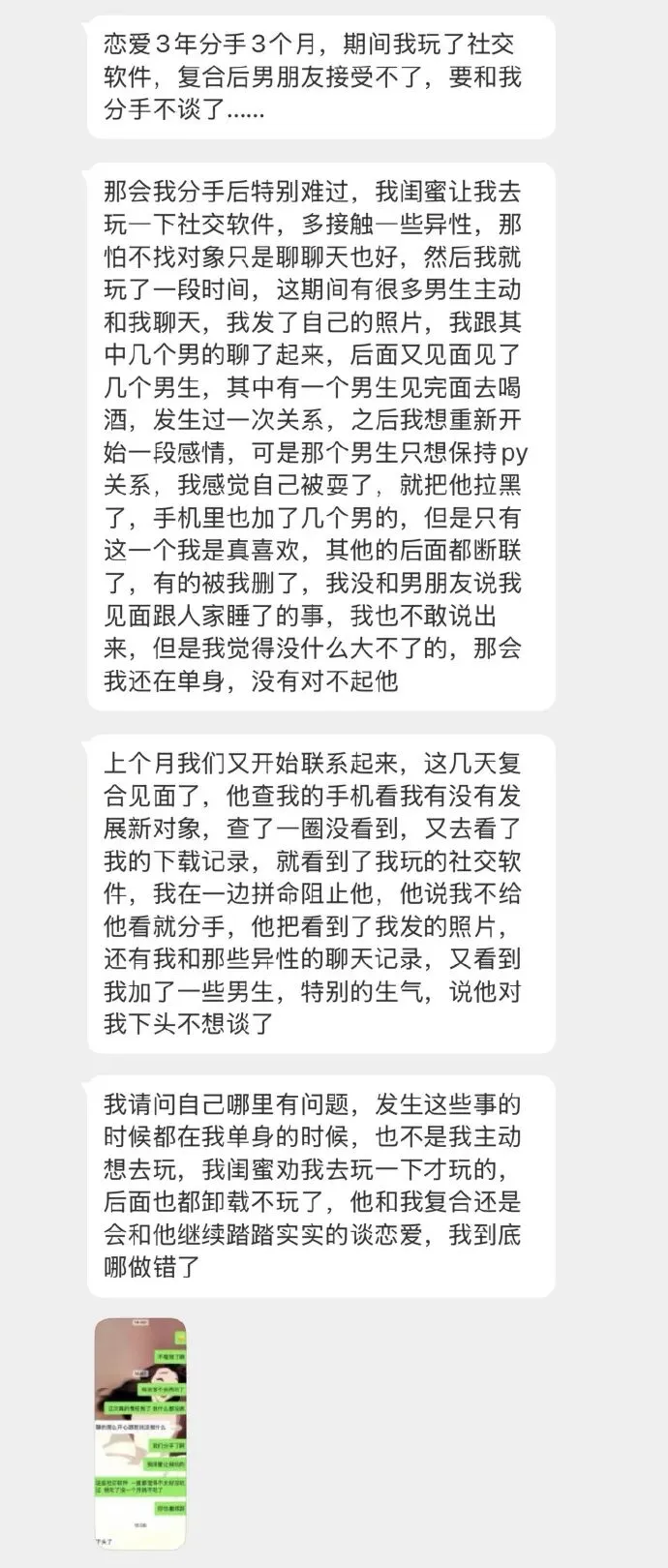 恋爱3年分手3个月,期间我玩了社交软件,复合后男朋友接受不了……