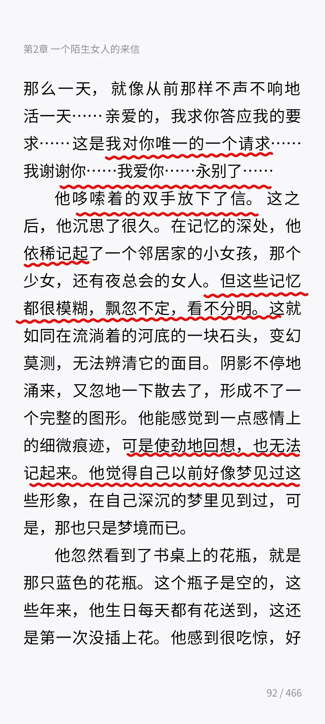 读完了,说真的,对于茨威格的文笔我是很佩服的,但是对于这样恋爱脑的女人我又想那骂她,骂醒她,可是我知道这是不可能的,不知道对她而言,这是一种幸福还是不幸!