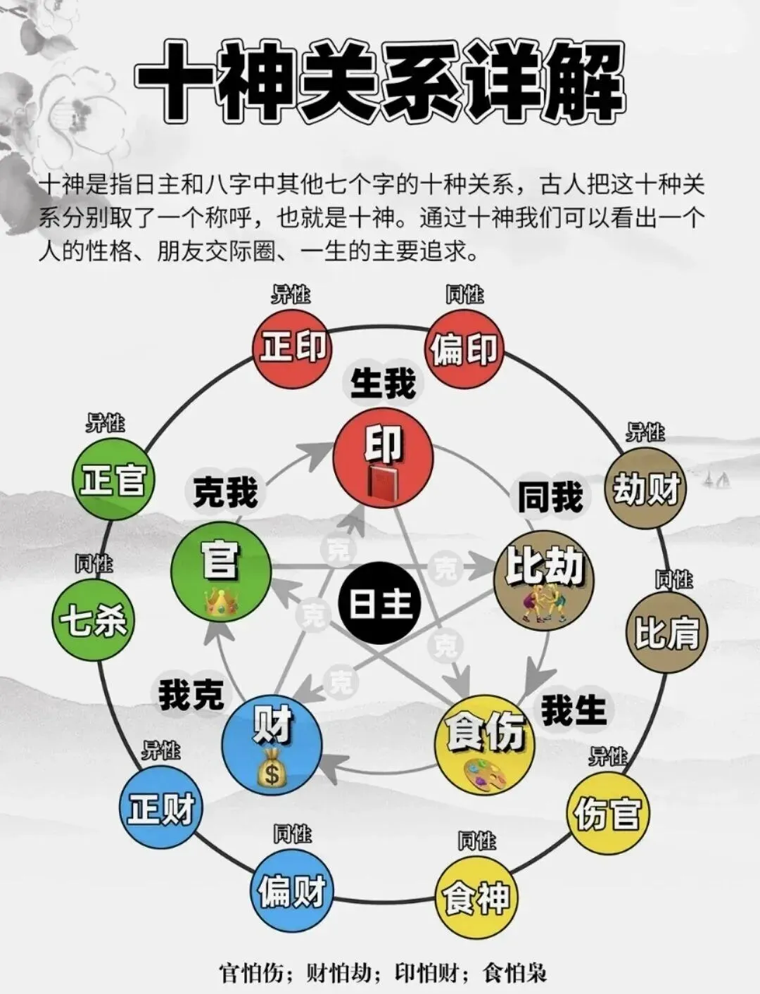 女命:以官杀为夫星(代表丈夫、长期的亲密对象)。