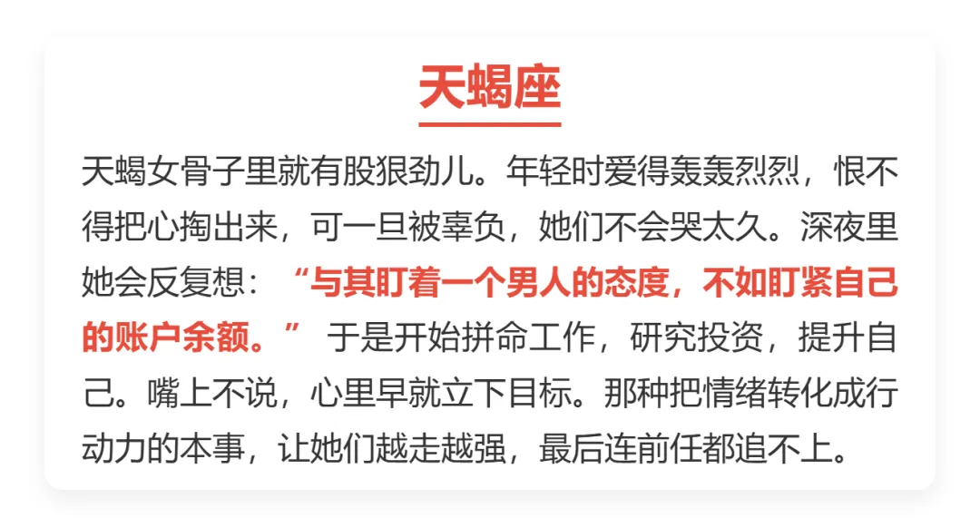 有些女.生,一谈恋.爱就把全.世界交出.去,可也有.些人,一旦.清醒,转身就.把重心.拉回自.己。不是她.们不相.信爱.情,是吃过.亏、流过泪之.后,明白了.一个道理:安全感这.东西,还是钱.最稳。 今天咱们.就聊聊,那些戒.掉恋爱脑,一心搞钱,越活.越像女.王的.星座女。