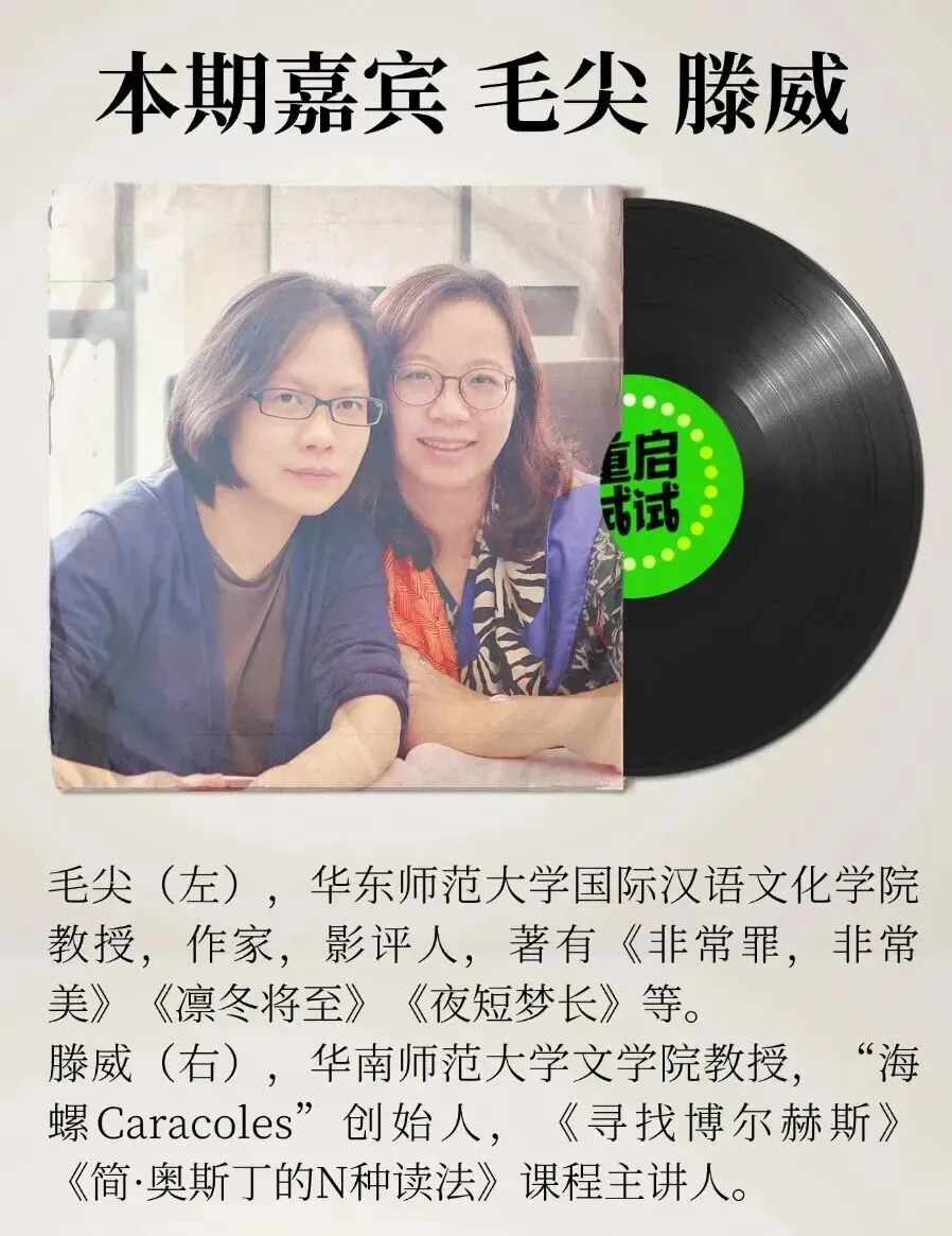 借着新课上线的时机,我们邀请到了滕老师和她的好闺蜜,也是资深的奥斯丁专家、读者,华东师范大学毛尖教授一起做客第34期重启试试。