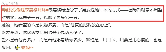 可是嘞,现在两个人谈了大半年有余了,结果男生买个耳环还要分期来。
