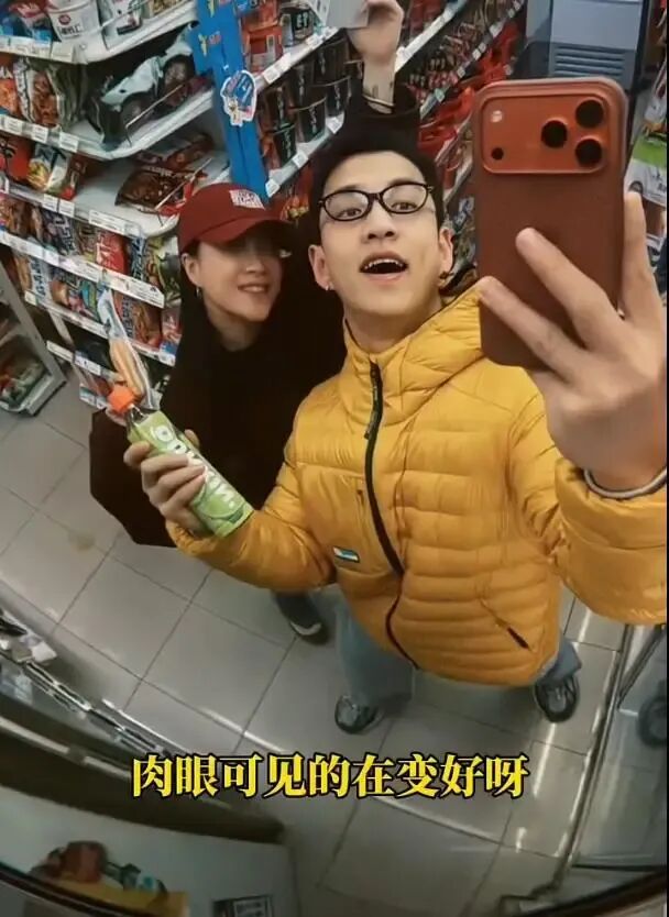 也经常会以女友的视角拍下男友的所有可爱行为: