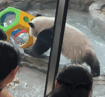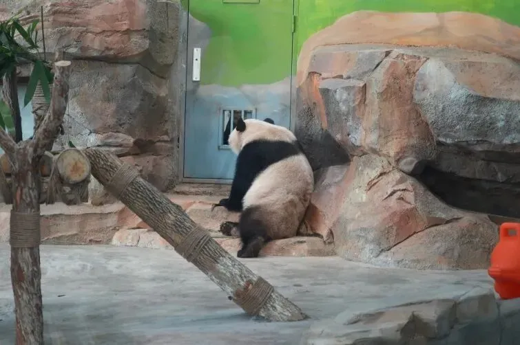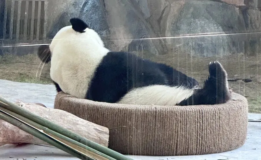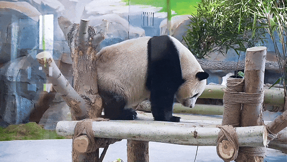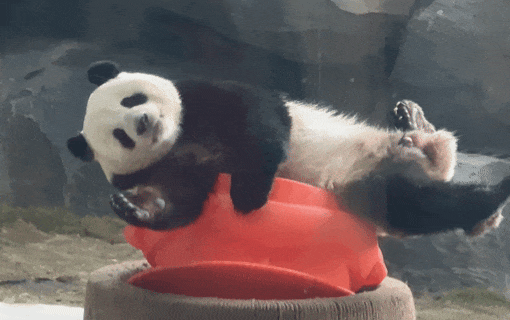 最近,有游客朋友看到宝元有时会将自己团成一个圆滚滚的小团子,时而去扒小窗偷窥它的奶妈,时而四脚朝天呼呼大睡。
