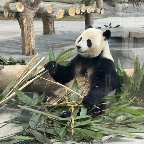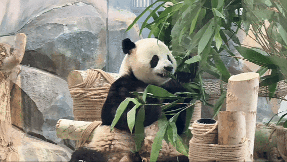 有时还会隔着玻璃和游客互动,宝元佛系起来是个不争不抢的淡定哥,也是妥妥的干饭哥哦~