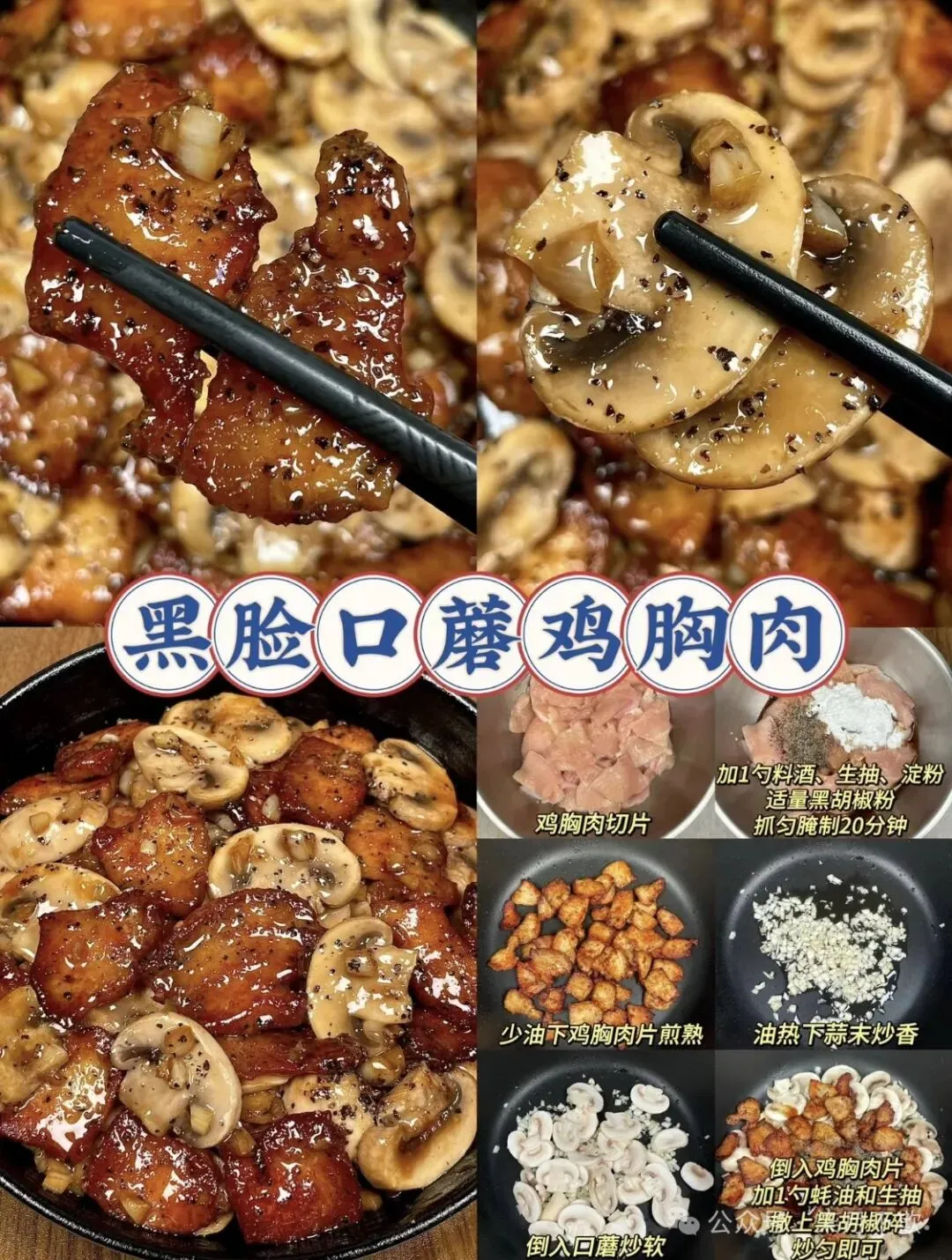 1️⃣家人们🥰,谁能拒绝这道黑椒口蘑鸡胸肉啊!
