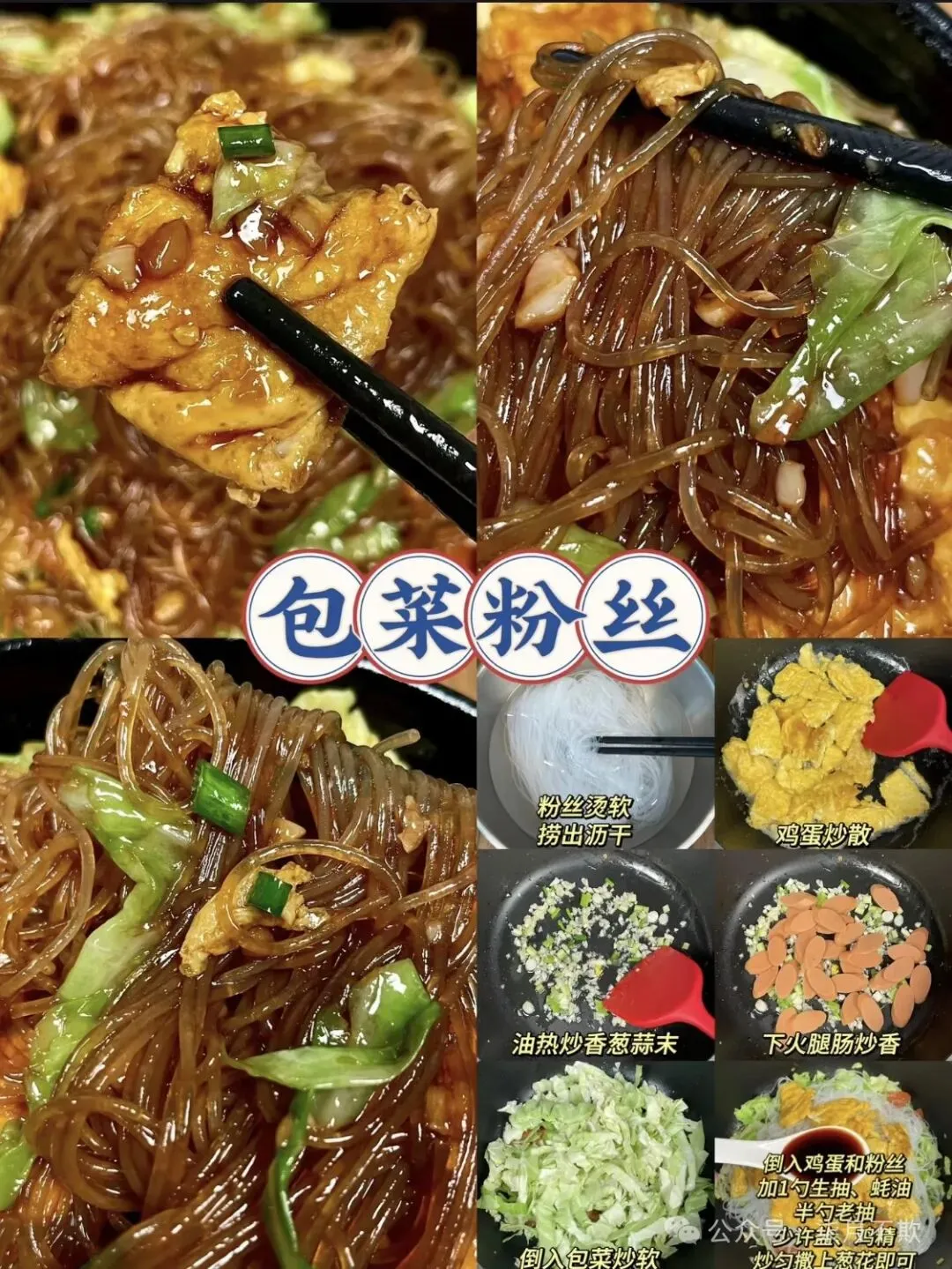 Q 弹粉丝搭配脆嫩包菜,加上鸡蛋、火腿肠的点缀,色香味俱全。步骤简单,从烫软粉丝到翻炒出锅,轻松几步,就能端出一盘超下饭的佳肴,谁做谁好吃,赶紧试试💗!