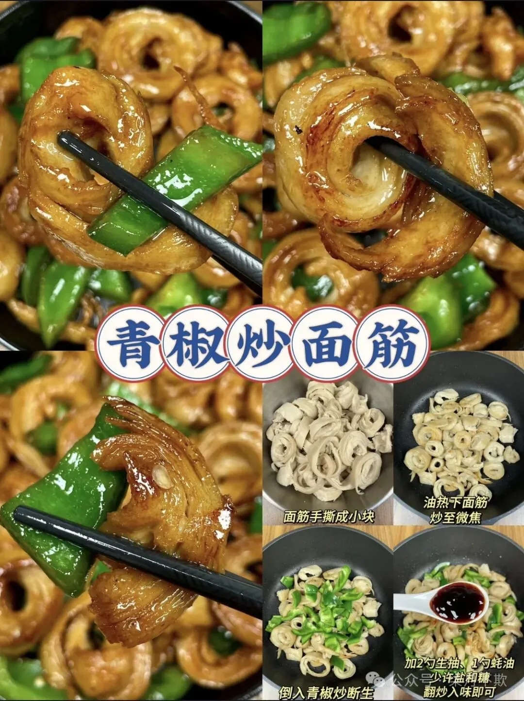Q 弹面筋搭配鲜辣青椒,简单几步,先将面筋炒至微焦,再与青椒共舞,加上灵魂调味,香气四溢。