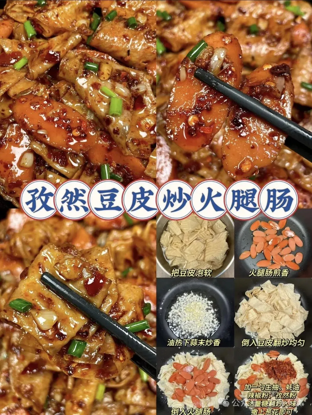 这道孜然豆皮炒火腿肠,简直是味蕾炸弹💥!泡软的豆皮搭配煎香的火腿肠,在蒜末的烘托下,撒上灵魂孜然和辣椒粉。翻炒间香气四溢,每一口都香辣过瘾,超级下饭,厨房小白也能轻松拿捏,快去试试~