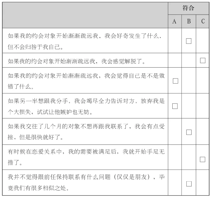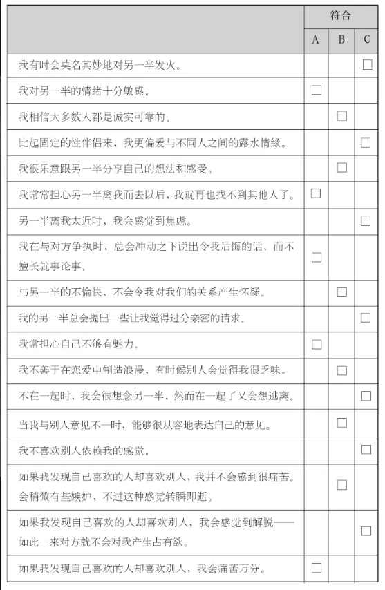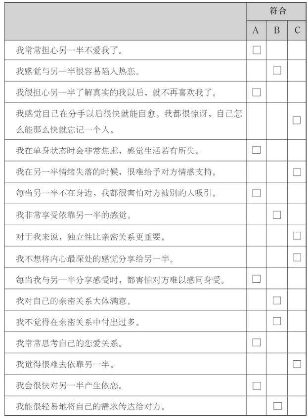 那么如何确定你的另一半是什么依恋风格呢?可以完成下面这份问卷