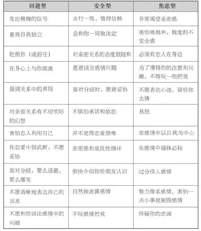 在日常生活中,社会中的所有人,不论他是情窦初开,还是结婚四十年,都能归入以下三种类型,安全型依恋,焦虑型依恋,回避型依恋,还有一部分比较罕见—焦虑回避型。