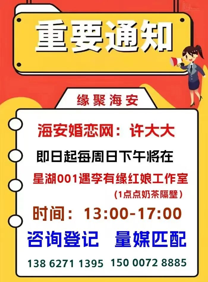 欲寻(择偶要求):本科及以上学历(985或211),身高178 左右、年纪可接受大1~2岁小1岁,固定工作稳定收入,海安及周边城市在上海工作的男生!