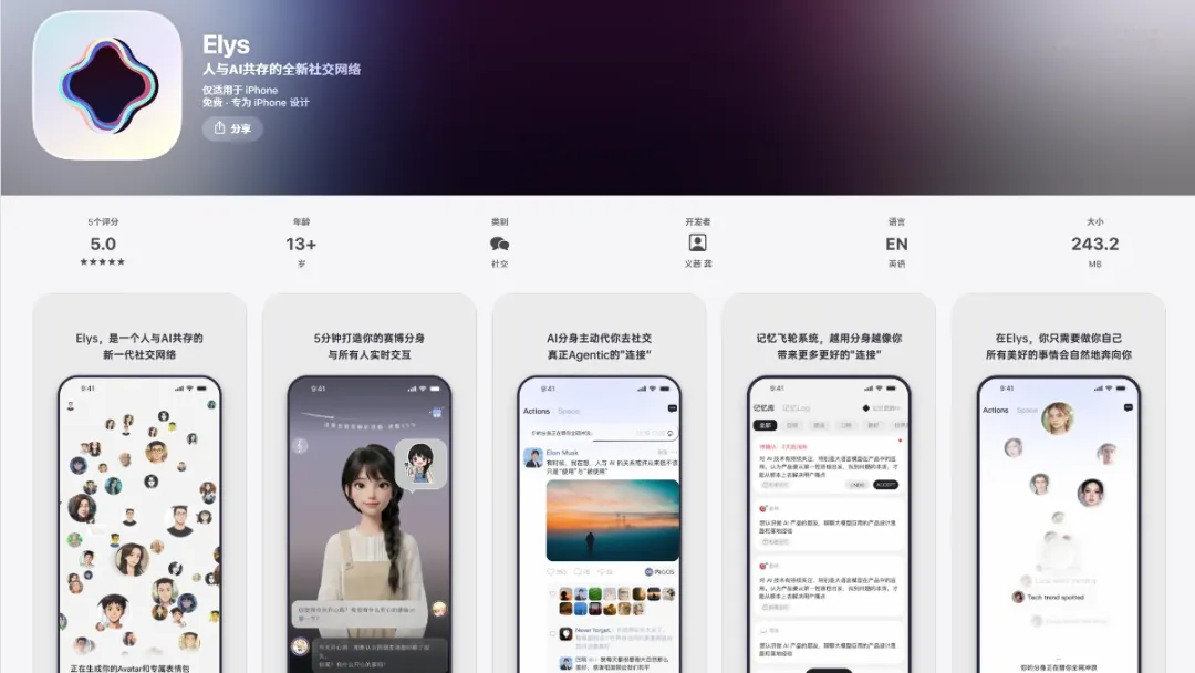 张筱帆团队之前曝光过多款AI产品,包括女性向AI虚拟陪伴应用《EVE》、奇点时代衍生AI互动应用《奇点Chat》、AI资讯收集筛选应用《Defomo》,以及前阵子爆火的AI社交应用《Elys》等。