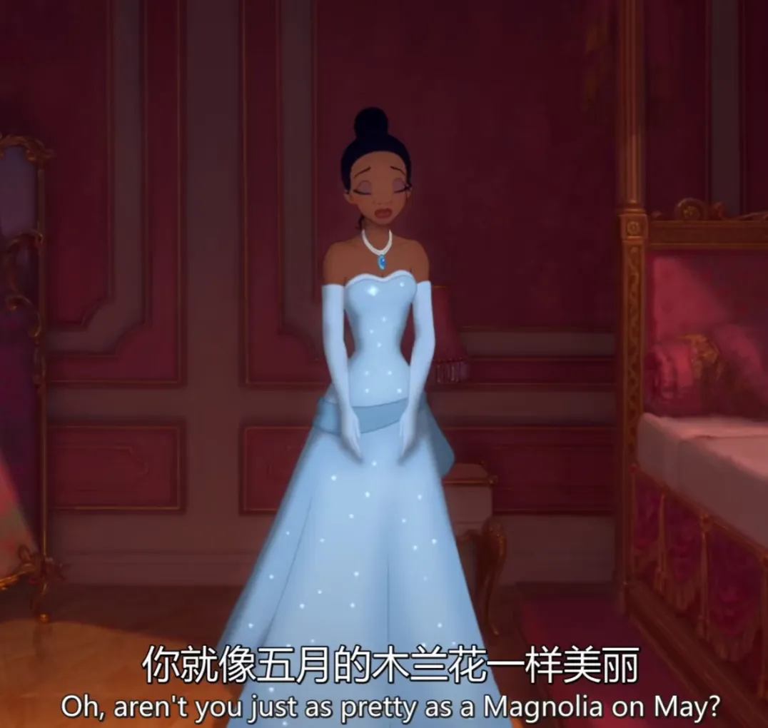 于是就可以看到夏洛特一个从小到大的粉色狂热爱好者,她居然拿出一条天蓝色礼服递给蒂安娜,并笑着夸她:“你就像五月的木兰花一样美丽!”一个把粉色刻进DNA的女孩,愿意为朋友准备不属于自己风格的裙子,这份用心,比任何奢侈品都珍贵。