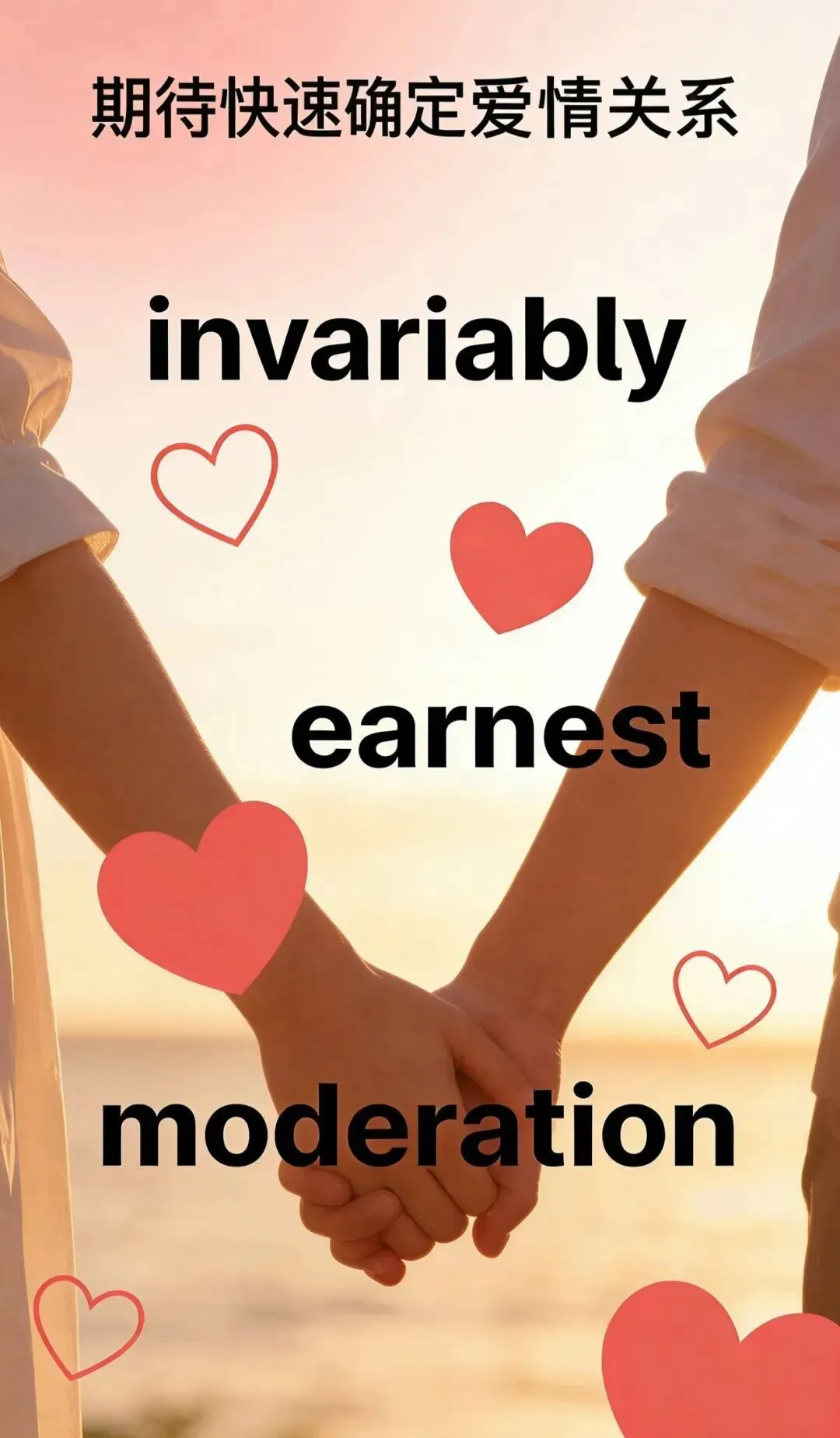 我能接受的恋爱节奏是希望快速确定关系。我invariably(总是)觉得,暧昧拉扯是一种不必要的消耗。与其在模糊的试探中浪费时间,不如用earnest(认真)的态度,直接确认彼此的心意。我不需要对方是完美的model(模范),但希望我们能跳过那些刻意的modification(调整),坦诚地走向彼此。我不追求感情里的variety(多样)惊喜,也不期待缓慢的试探。对我来说,一段tolerable(可承受)的关系,应该建立在清晰的边界和明确的节奏上。我们可以适度保持moderation(适度)的距离,但方向必须一致,这样才能在确定关系后,更安心地经营未来。