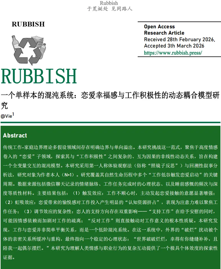 (3)伦理的便捷性:研究自己,无需审批,只需诚实。研究周期覆盖了最近几段“工作低谷与恋爱温存交织”的时光——那些在疲惫中被托住的时刻,那些在温暖中愈发不想上班的时刻。
