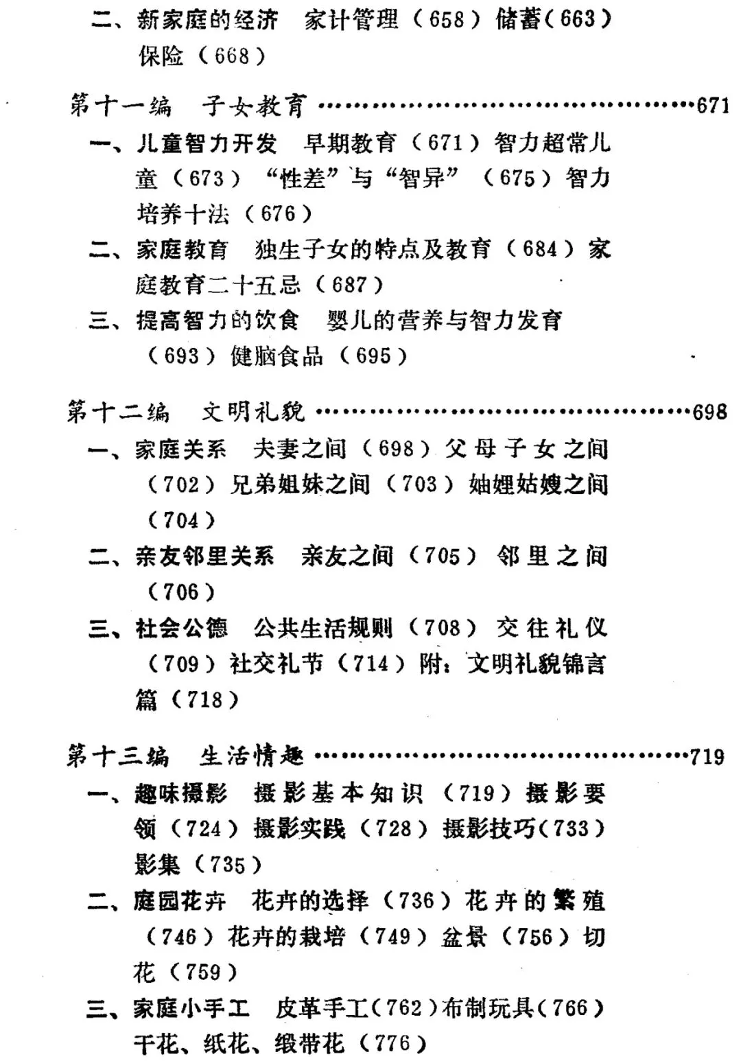 本书从树立正确恋爱观、婚前准备,到仪式婚礼、旅行结婚的新式选择;从家务料理、妊娠生育,到卫生保健、子女教育,甚至童装裁剪、编织刺绣、家电维护……事无巨细,一一作答,几乎覆盖了一个家庭从组建到运转的全部场景。