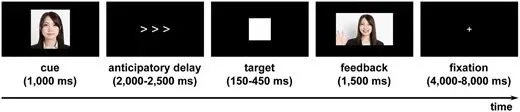 任务流程:受试者需要根据屏幕上的线索进行快速按键反应。如果反应成功,他们就能在屏幕上看到对应对象的“赞许”——比如伴侣的微笑和加油手势。