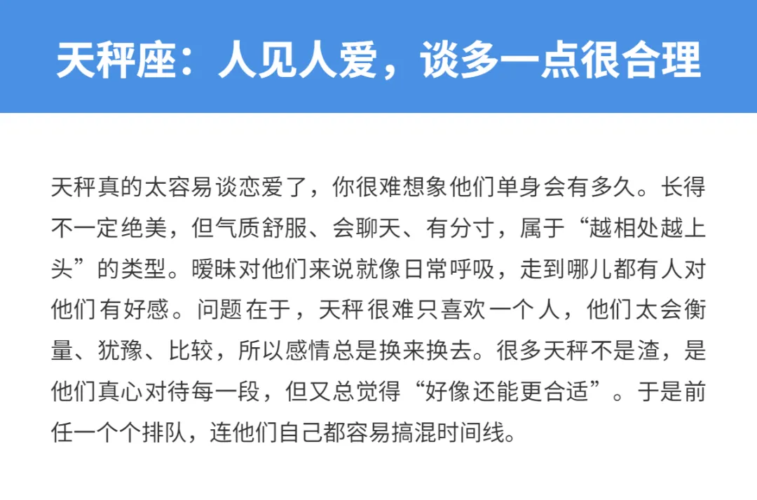 你身边有没有这种人:对象换得飞快,恋爱故事能从地铁讲到高铁,前任数量多到自己都懒得数?别急着骂人“渣”,有的星座真的就是自带“恋爱体质”,感情来得快去得也快,体验丰富到堪比情感博主。今天咱就来聊聊,十二星座里那些前任最多、恋爱经历最“拉风”的星座。提前说好:不是给谁定罪,只是盘点他们在感情里的典型模式,你看看有没有戳中你,或者你正在跟他们谈恋爱。