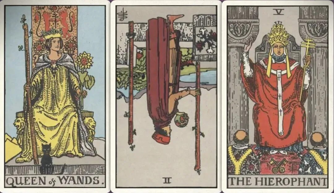 牌:圣杯皇后+ 星币皇后- 宝剑皇帝-