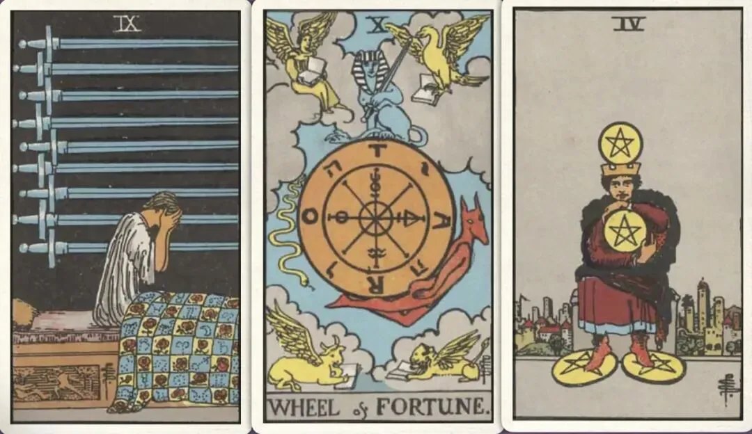 牌:圣杯侍从+ 宝剑九- 星币六+