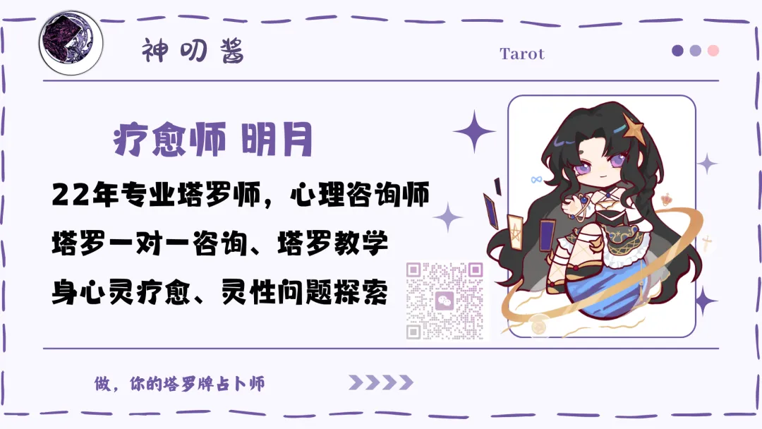 指引:接下来,请试着冷静客观的看待生活中的各种事。你可能会面临欺骗、误导、或者权力的施压和矛盾,这时候,请试着远离,保持距离看待这些事,不介入,或者更多的以自己为主。让自己成为观察者,而不是陷入者。