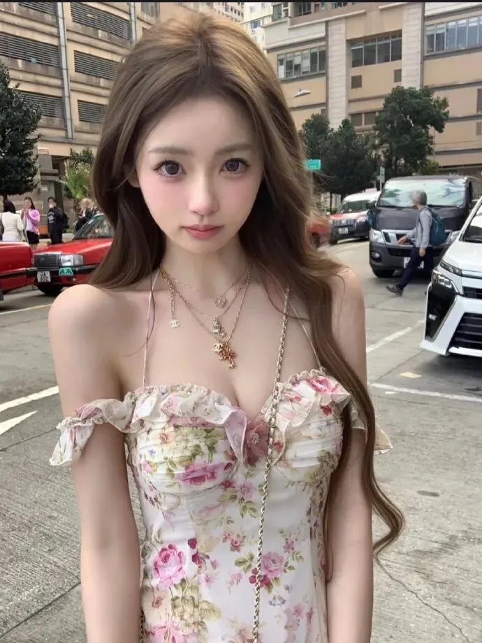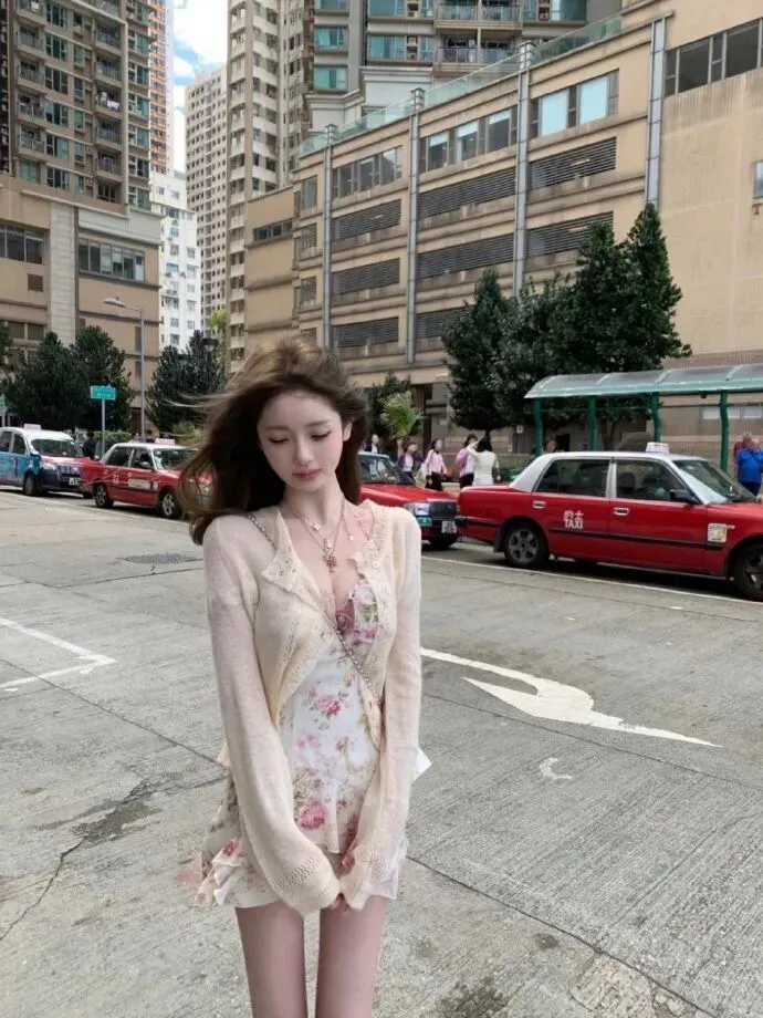 另外一套是碎花的小裙搭配披肩长波浪卷,在街头与摩天轮拍摄日常。