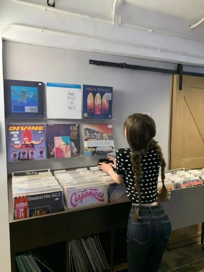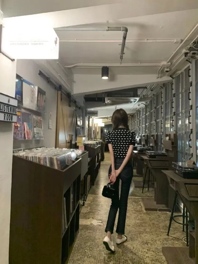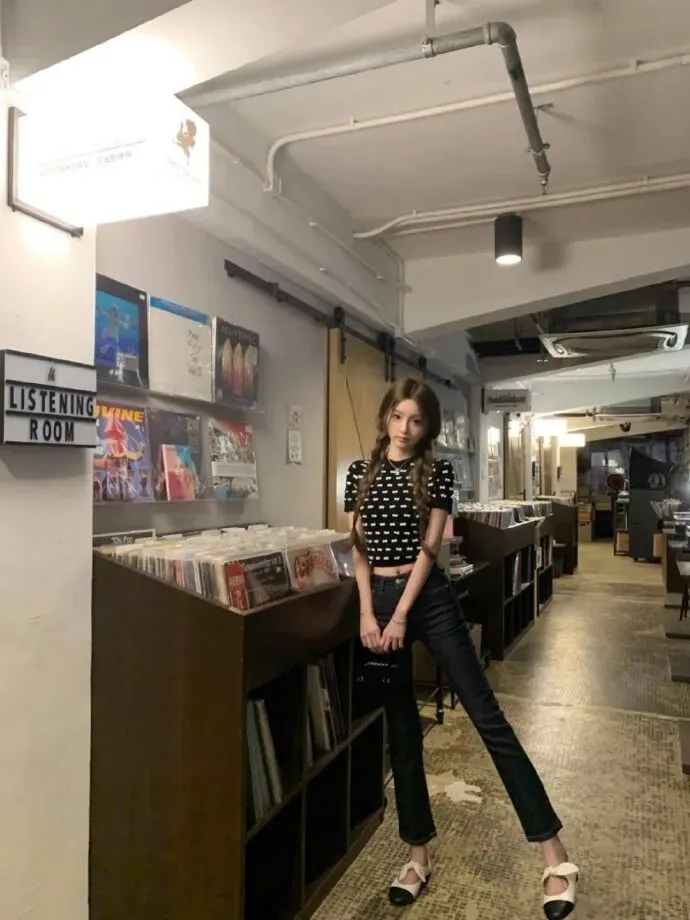 懒懒选择拍摄的地点也非常有巧思,她选择在国外的书店里,将知性感觉进行到底。