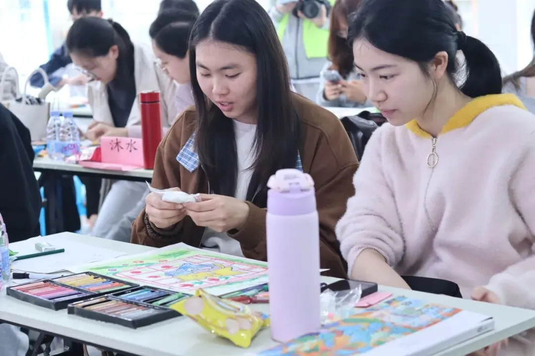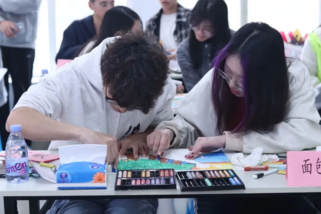各组搭档围绕“理想中的恋爱场景”进行共创。从构图构思到色彩渲染,每一次落笔都是双方观点的碰撞与融合。面对分歧,同学们在实践中学习主动倾听、换位思考与适时妥协,逐渐摸索出彼此舒适的相处节奏。