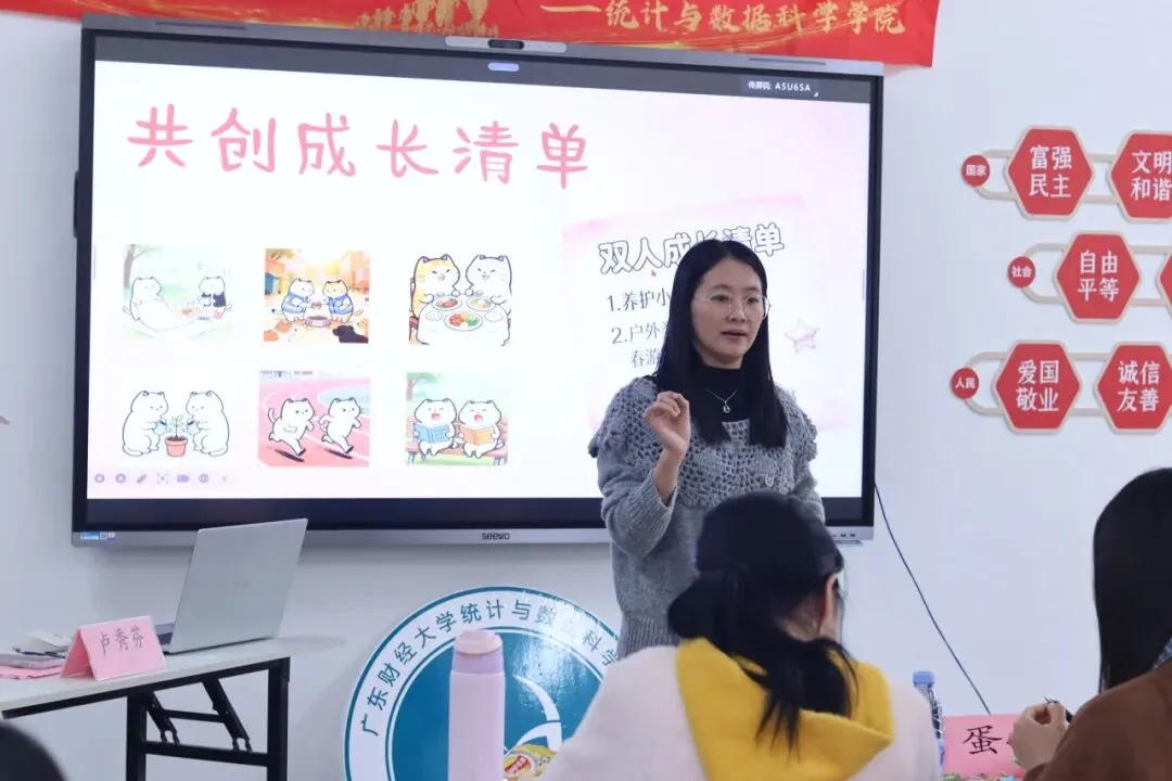 为引导大学生树立科学健康的恋爱观,提升亲密关系中的沟通协作与冲突化解能力,统计与数据科学学院依托“校医协同”创新模式,于2026年3月10日下午在佛山校区竹园社区举办了第二期“爱启心航·恋爱心理成长团体辅导”活动。本次活动以“恋爱中的沟通与合作、冲突化解”为核心主题,特邀佛山市三水区疾病防治所心理门诊邝就贤医生担任专业指导,24名来自不同专业的同学在首期活动的基础上再次集结,共同开启了一段探索爱与成长的旅程。活动由学院心理辅导站站长卢秀芬主持。