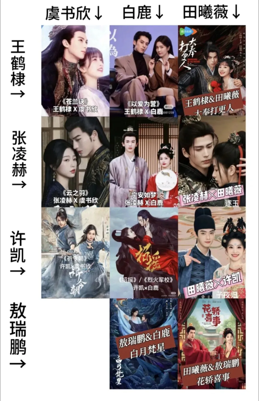 打开近期影视片单,一种诡异的熟悉感扑面而来:张凌赫刚和白鹿演完古偶,转头就和虞书欣组CP;赵露思前一秒还和王星越谈情说爱,下一秒就和王安宇解锁新恋情——内娱演员的“换乘恋爱”,早已卷成常态。