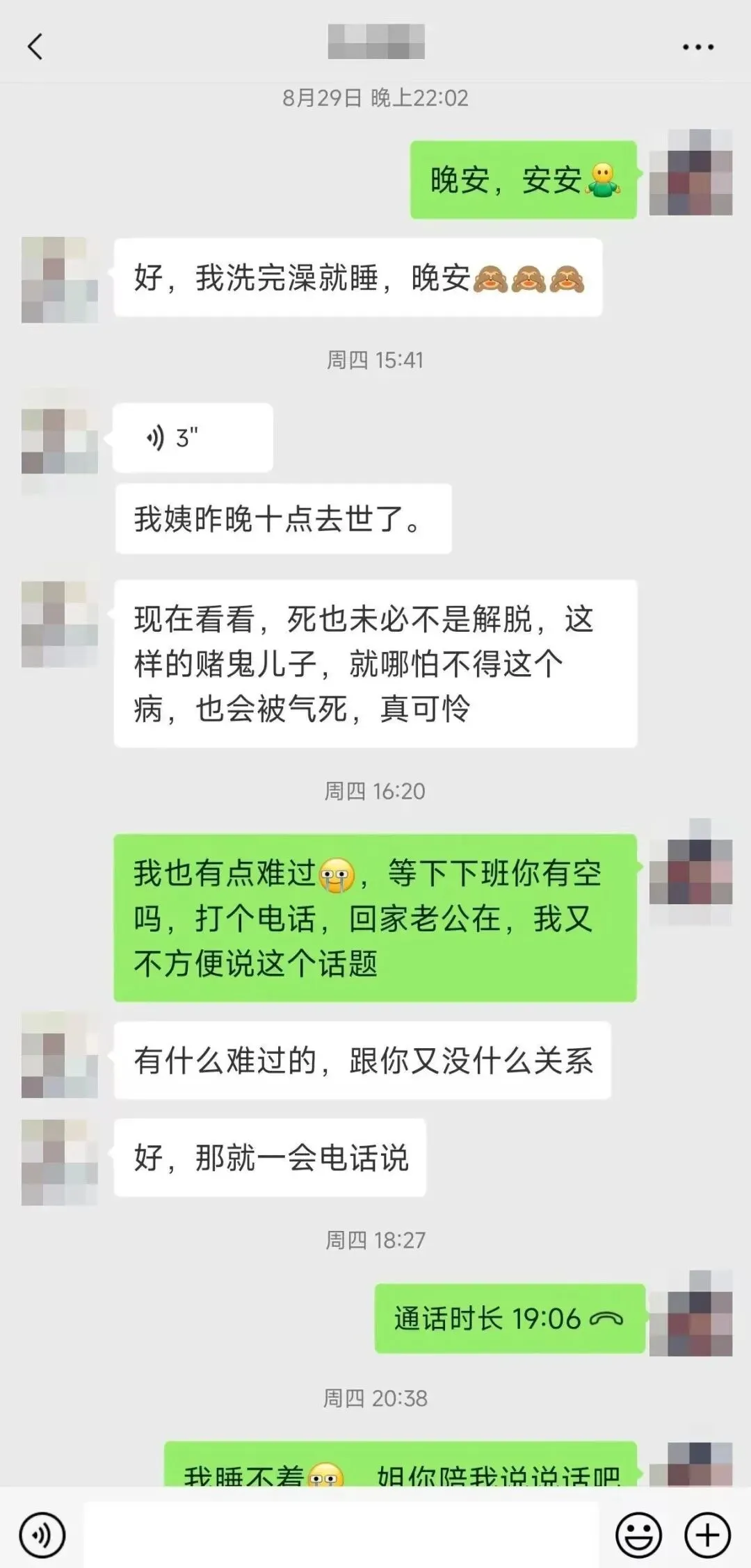 为什么今天来投稿?上个月前婆婆病了,连住院费都拿不出。因为错过最佳治疗时间,前天人已经走了。我也很难受。从2018年到现在,前夫还在赌。他如果不赌,前婆婆不会走,他如果不赌,我们也不会离。